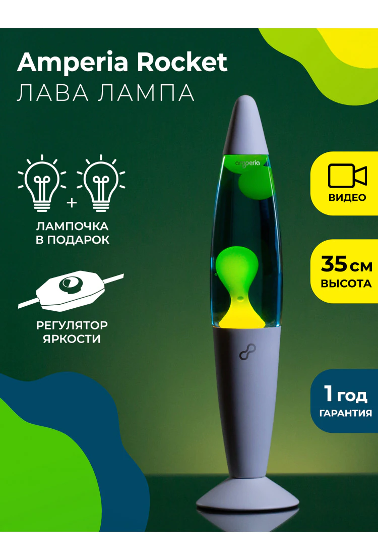 Лава лампы Российского бренда Amperia отличаются качеством изготовления. Все лампы оснащены регуляторами мощности, что позволяет удобно управлять яркостью и интенсивностью работы лава-лампы, а также уберегут лампу от перегрева. Для подсветки используются более энергоёмкие галогенные лампочки. С каждой лампой в комплекте идёт дополнительная запасная лампочка и подробная инструкция на русском языке.