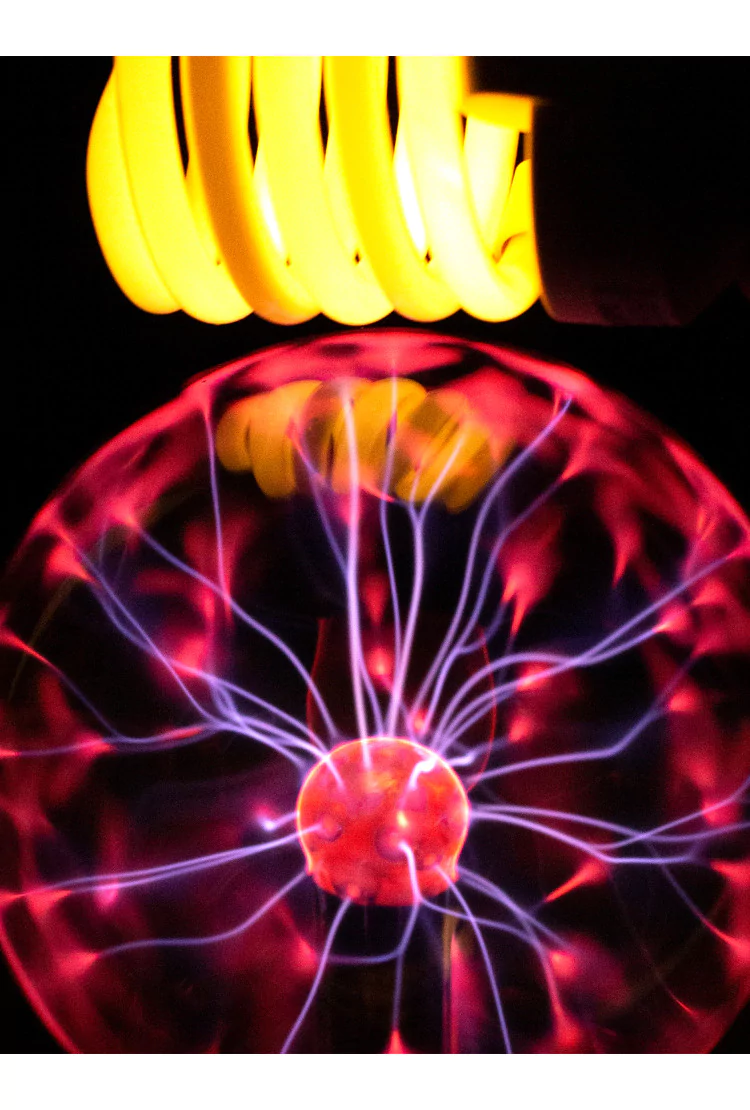 Магический плазменный шар (D - 12см) - это небольшой декоративный шар Тесла (плазменная лампа), работающий от сети 220V. Включив магический шар в розетку, он тут же начнет источать огромное количество тоненьких молний, имеющих свое начало в центре шара и заканчивающихся у его стенок. При соприкосновении с шаром в рабочем состоянии, огромное количество маленьких молний преобразуется в один или несколько более толстых разрядов. Молнии могут принимать следующие цвета: от ярко синего до розово-сиреневого.